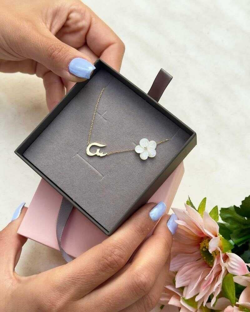 سلسال وردة مع سوارة حرف عربي مطلي ذهب