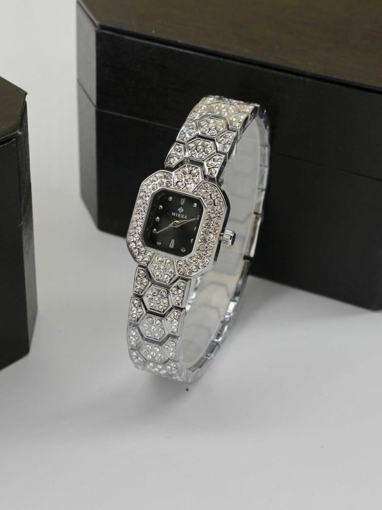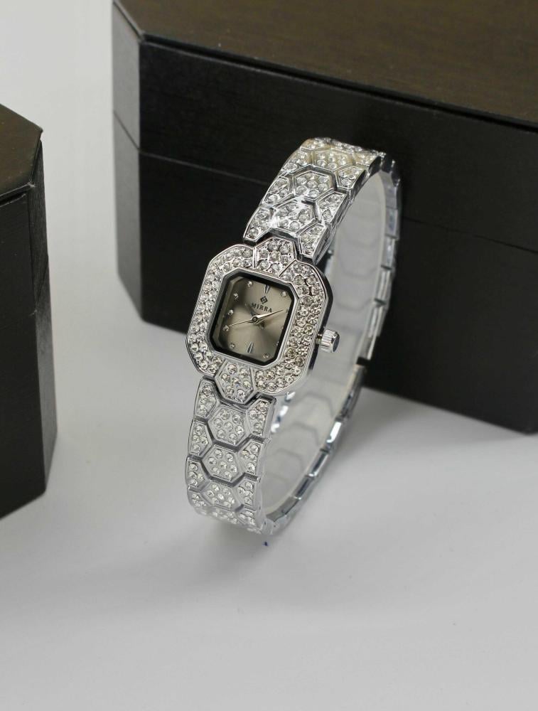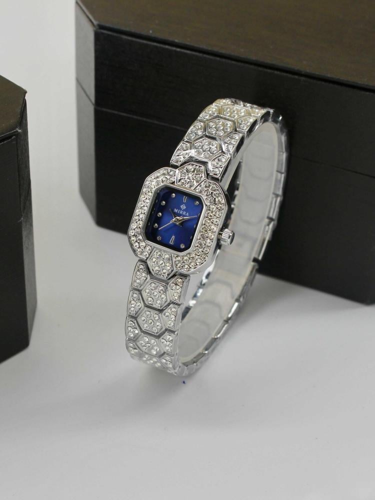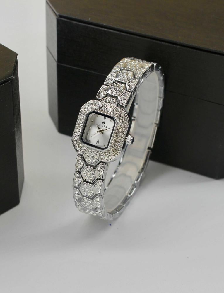 - ساعة ستانلس ستيل مرصعة بالكريستال اللامع.