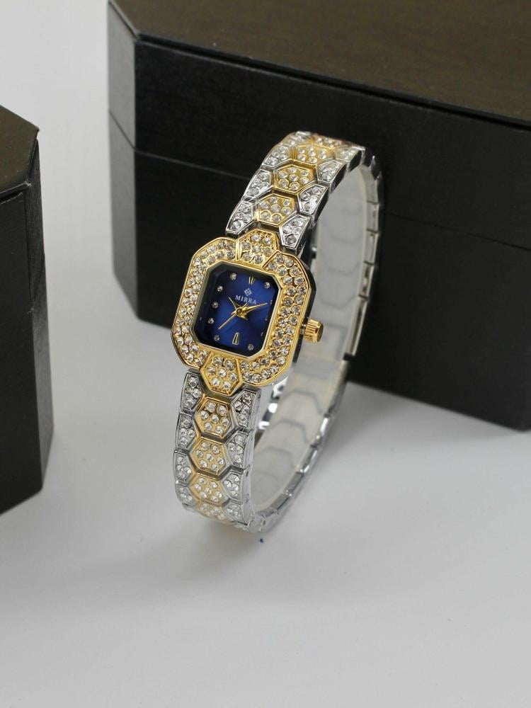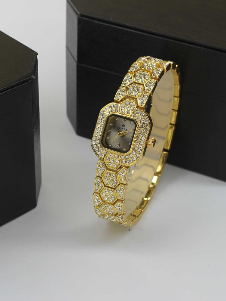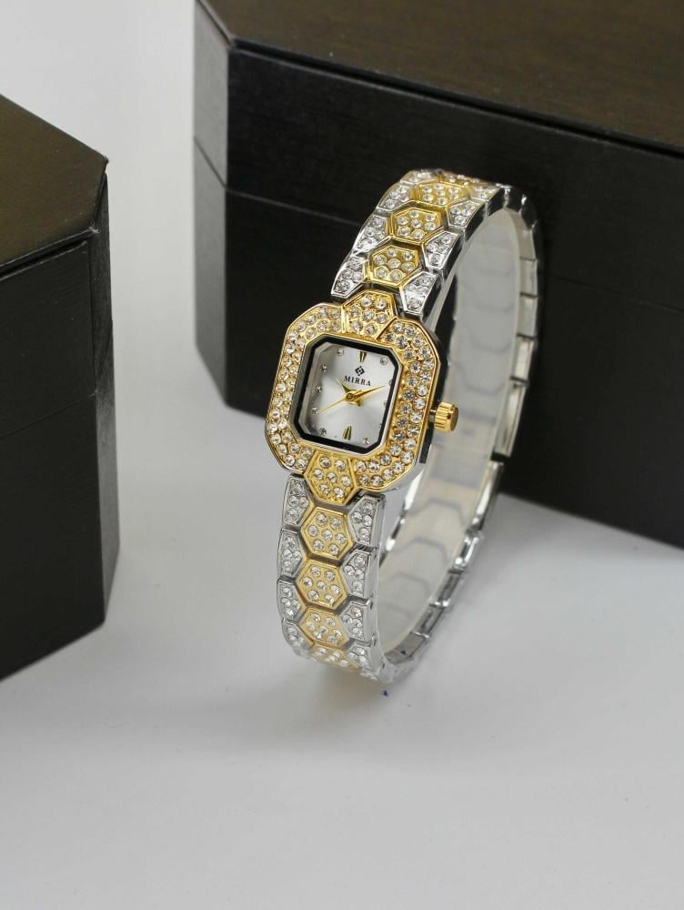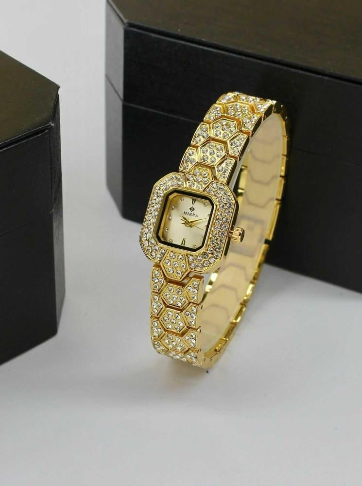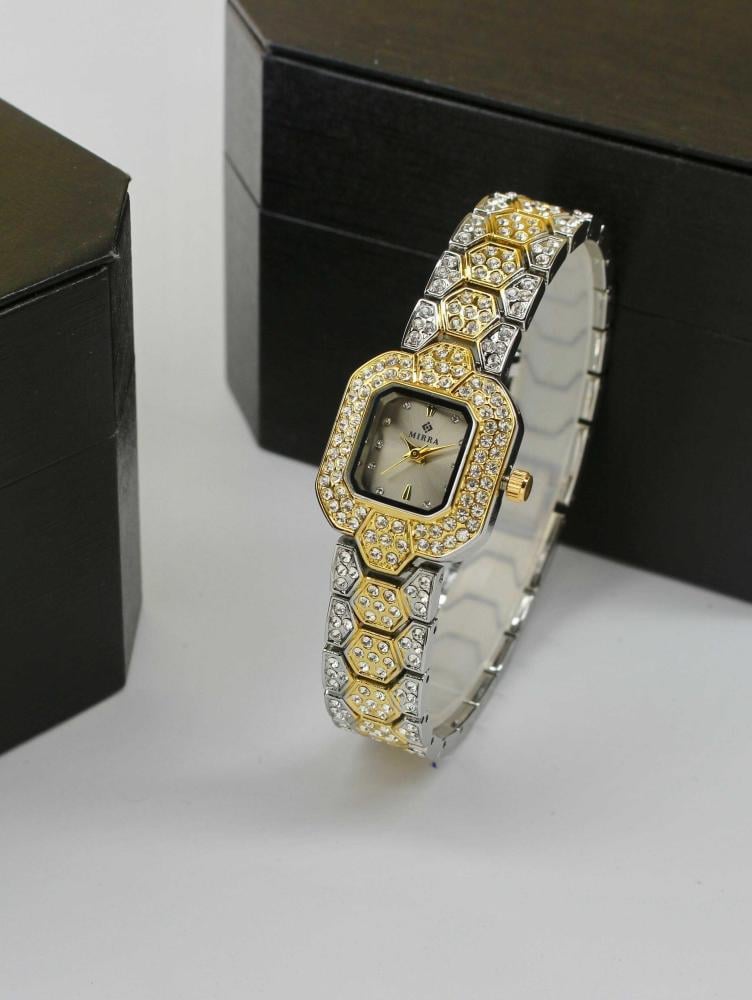 - ساعة ستانلس ستيل مرصعة بالكريستال اللامع.