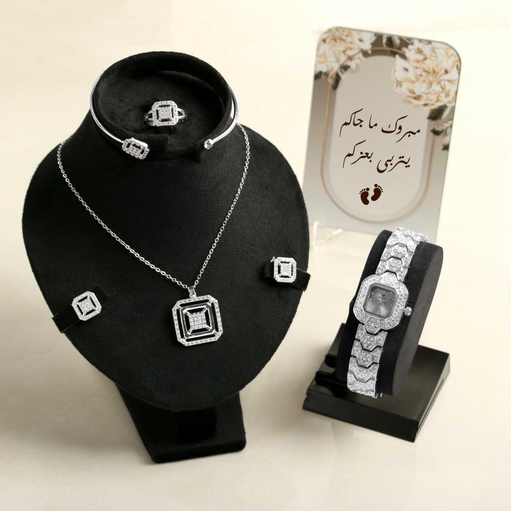 احتفل بوصول المولود الجديد وقدّم هدايا للزوجة بعد الولادة تعبر عن تقديرك وحبك. هذا الطقم الأنيق هو الهدية المثالية التي تليق بكل أم جديدة، سواء كانت زوجتك، أختك، أو صديقتك. يجمع هذا الطقم بين الأناقة والجمال، ويمنحها لمسة من الرقي تستحقها بعد رحلة الأمومة.